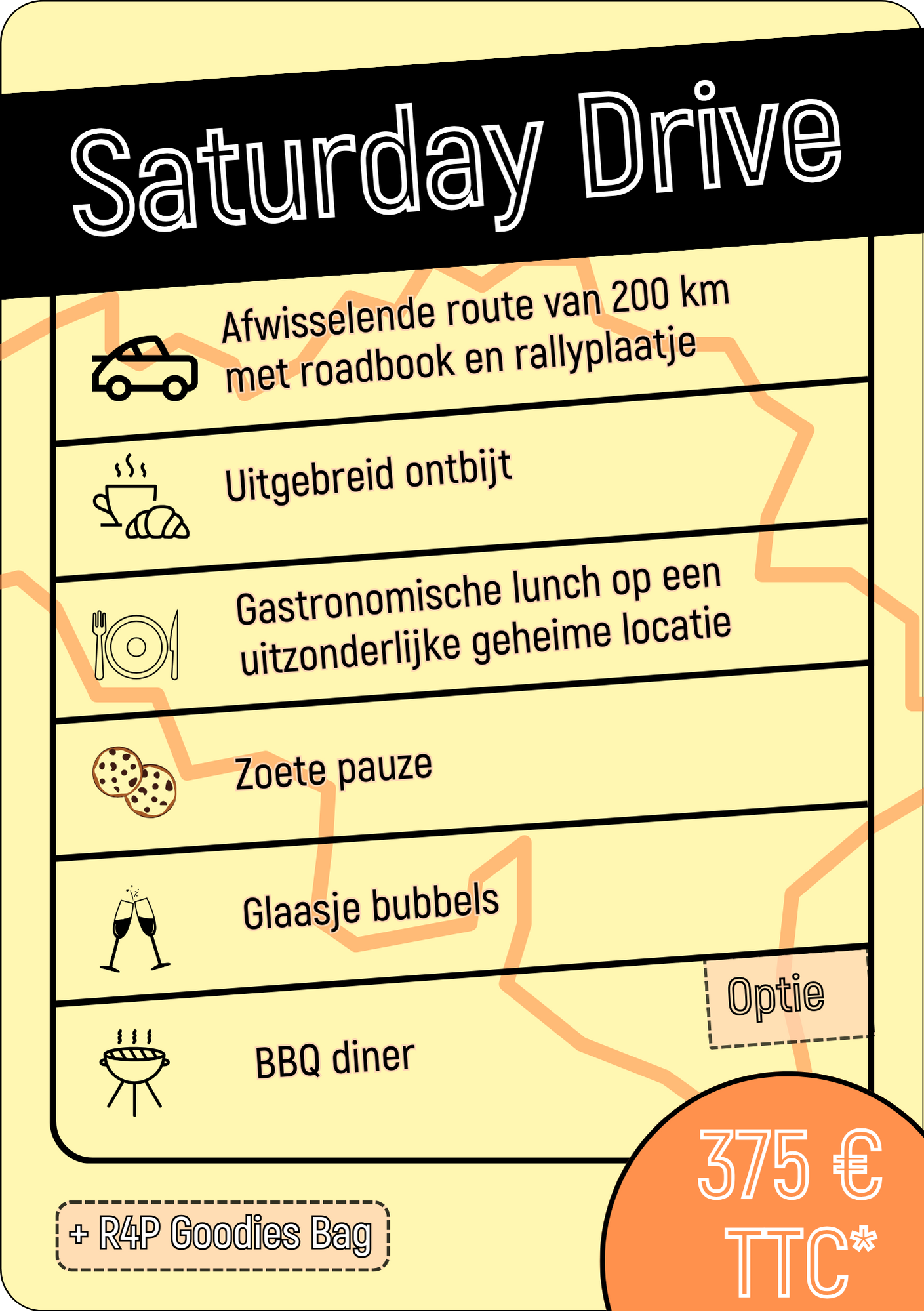 * Alle pakketten zijn voor twee deelnemers (bestuurder en bijrijder)